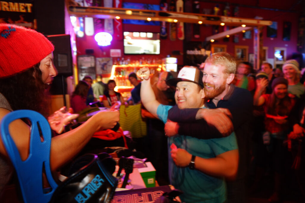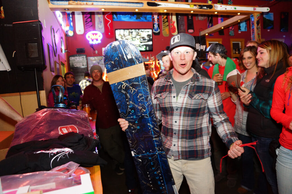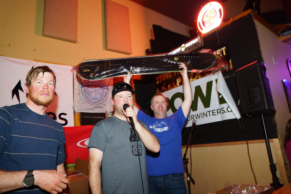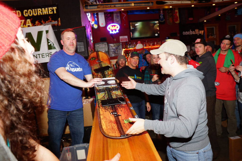 Make sure you choose someone to watch your beer before the raffle begins. You don’t want to be delayed trying to ask a disgruntled raffle looser to watch your beer while you run up to the front and claim your brand new splitboard!
